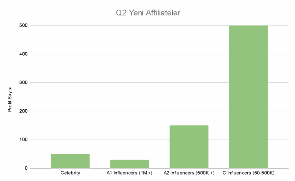 Q1 de ulaşılan Influencerlar üzerinden çarpan olarak aşağıdakiler baz alınmıştır.